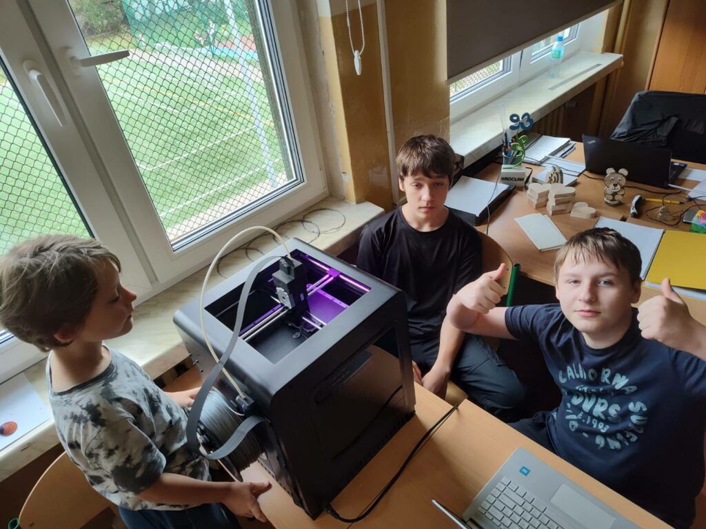 Chłopcy z klasy 8A naprawili drukarkę 3D.