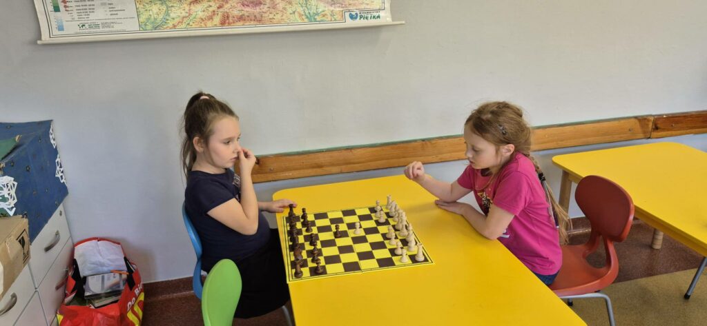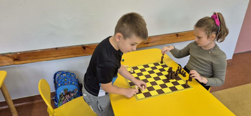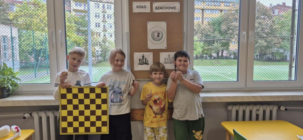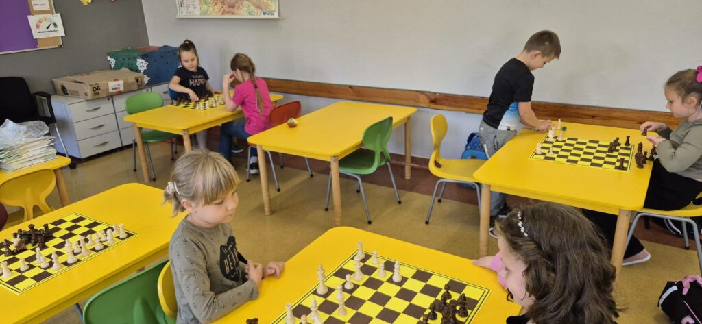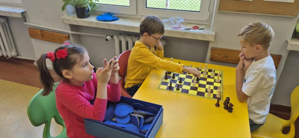 Każde spotkanie szkolnego koła szachowego to okazja do nauki, zabawy i wspólnego rozwijania pasji. Uczniowie z zaangażowaniem planują swoje ruchy, analizują, partie i z uśmiechem, podejmują kolejne wyzwania.