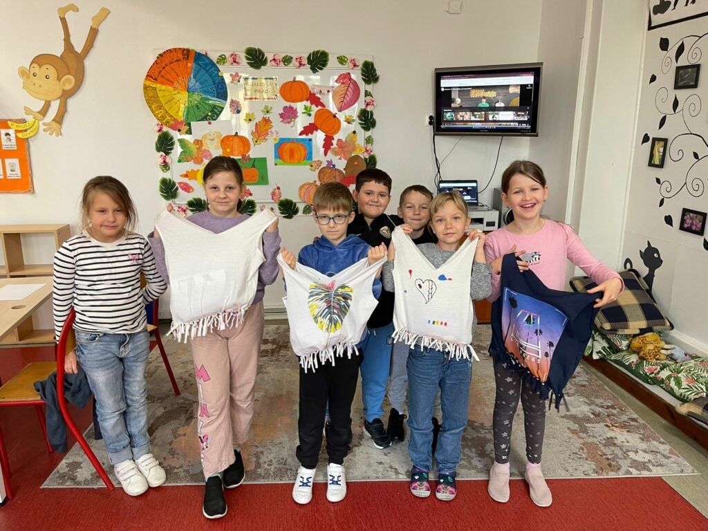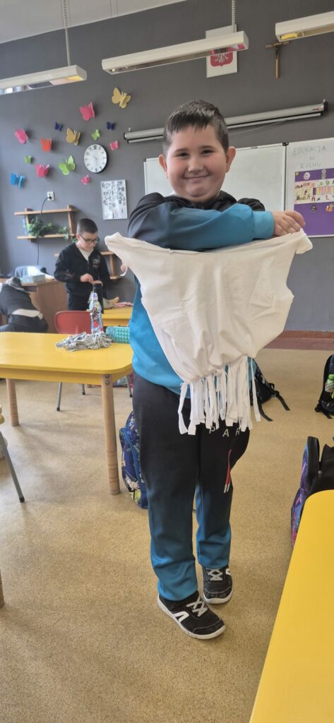 Dziś w klasie 2a odbyły się warsztaty ekologiczne organizowane przez Centrum Placówek Kształcenia Zawodowego realizowane w ramach projektu-Nowoczesna edukacja.Dzieci obejrzały prezentację o segregacji śmieci i wykonywały torby z koszulek bawełnianych.