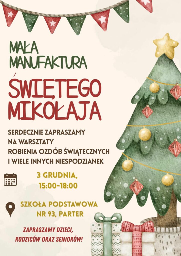 Serdecznie zapraszamy wszystkich chętnych uczniów, rodziców i dziadków na warsztaty robienia ozdób świątecznych i wiele innych niespodzianek.