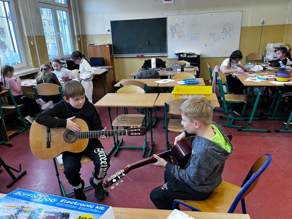 Po świątecznych feriach po prostu miło spędzamy czas — rozmawiamy, robimy bransoletki, rysujemy kredkami i farbami, a także długopisami 3D, gramy na gitarze i składamy klocki konstrukcyjne.