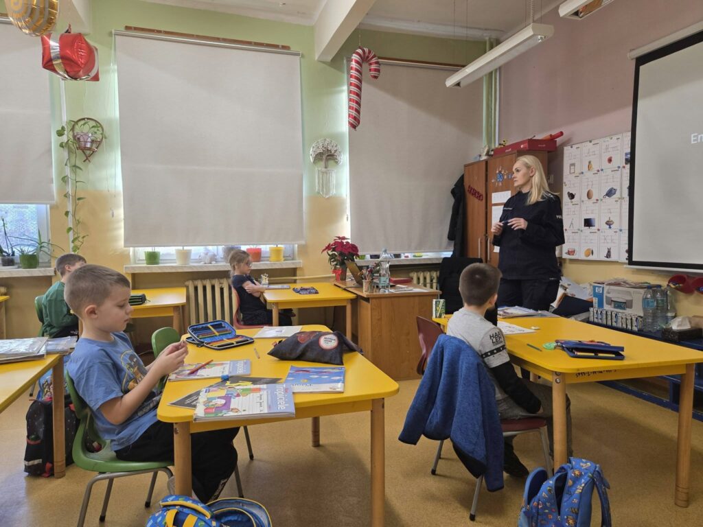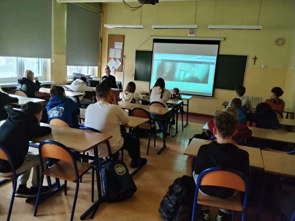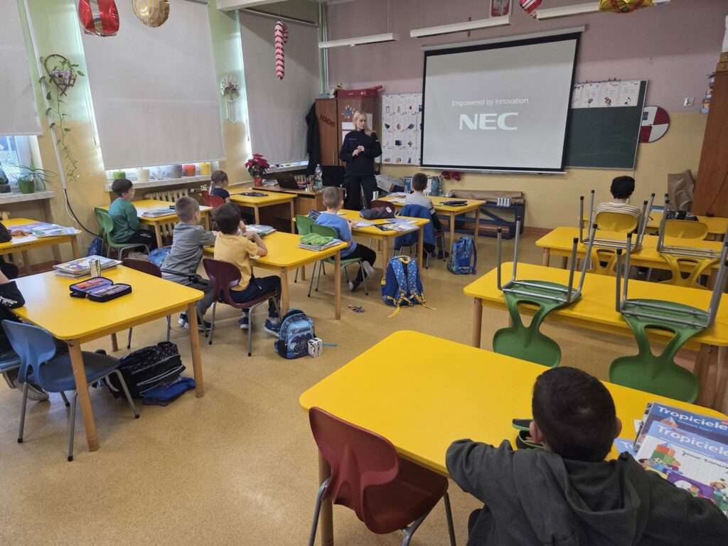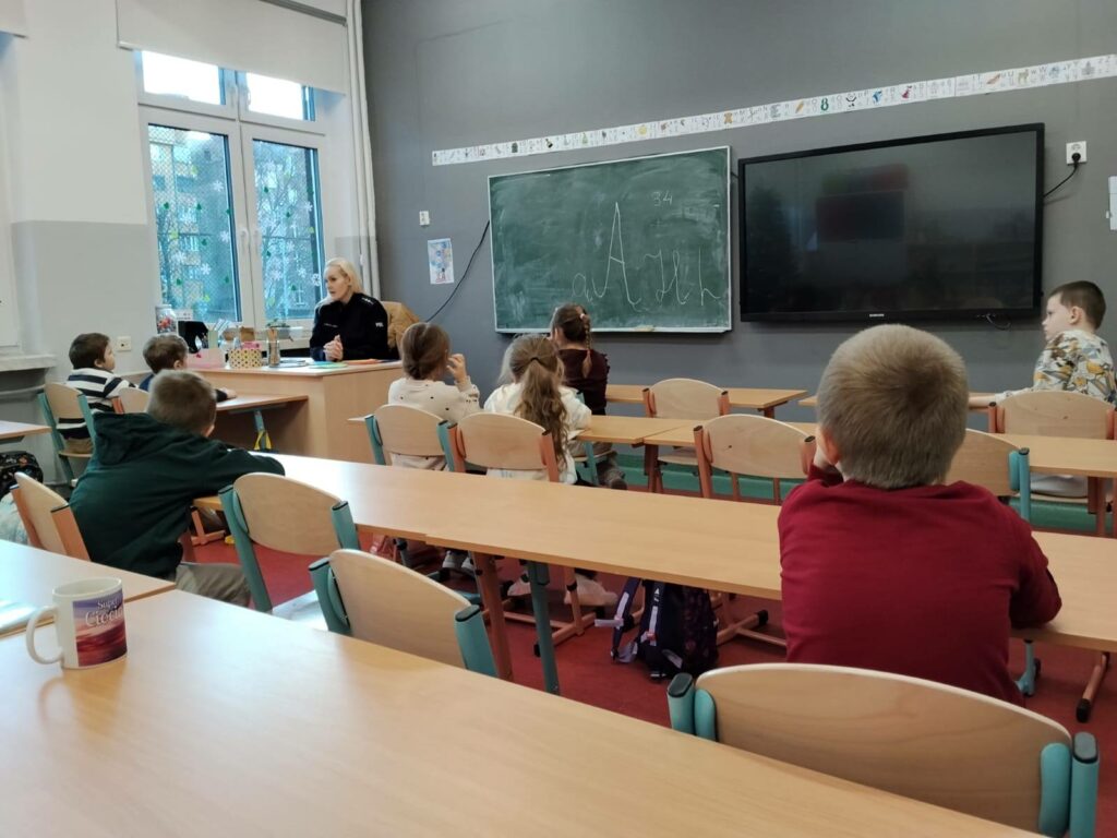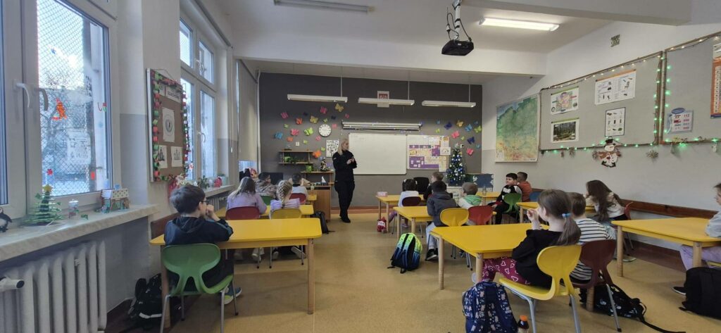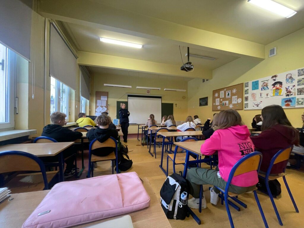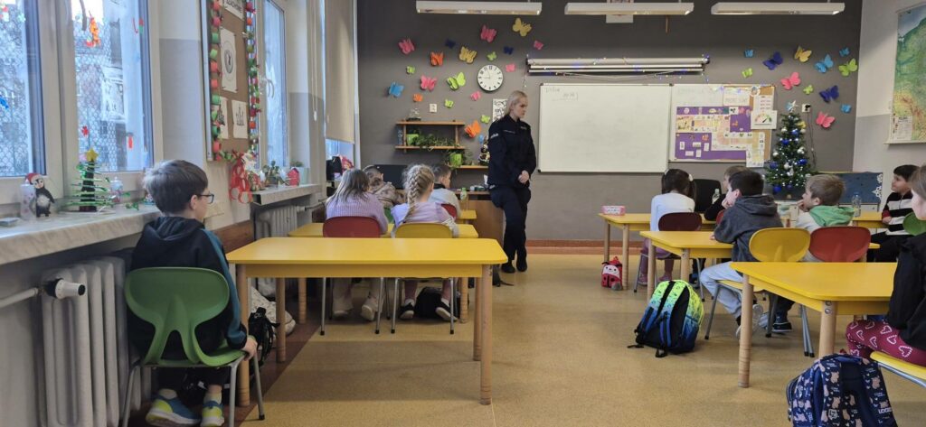 W dniach 12–15.01.2026 r. naszą szkołę odwiedziła policjantka asp. Anna Krawczyńska-Musiał, która przeprowadziła warsztaty i pogadanki dla uczniów klas 1–8. Tematem spotkań były bezpieczne ferie, przemoc rówieśnicza oraz odpowiedzialność karna nieletnich. W klasach 7–8 ważnym elementem zajęć było włączenie reportażu „Dzieci na krawędzi” Edyty Krześniak, który w sposób poruszający pokazał realne konsekwencje ryzykownych zachowań. Materiał ten doskonale uzupełnił działania profilaktyczne prowadzone przez policję, skłaniając uczniów do refleksji i odpowiedzialnych wyborów.