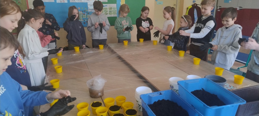 Klasa 2 b uwielbia naukę w ruchu…ale w piątek okazało się,że po całym tygodniu są już bardzo zmęczeni. Tak więc zawędrowali do „strefy relaksu”na 2 piętro. A tam,”las”,kominek,muzyka relaksacyjna,to wszystko czego potrzebowali. Było super. Jeszcze przystanek „pod skrzydłami” i zrelaksowani wrócili do klasy.A w poniedziałek z nową energią i zapałem przystąpili do wysiewu owsa i sadzenia cebulki na szczypiorek.Już nie mogą się doczekać wzrostu sadzonek.