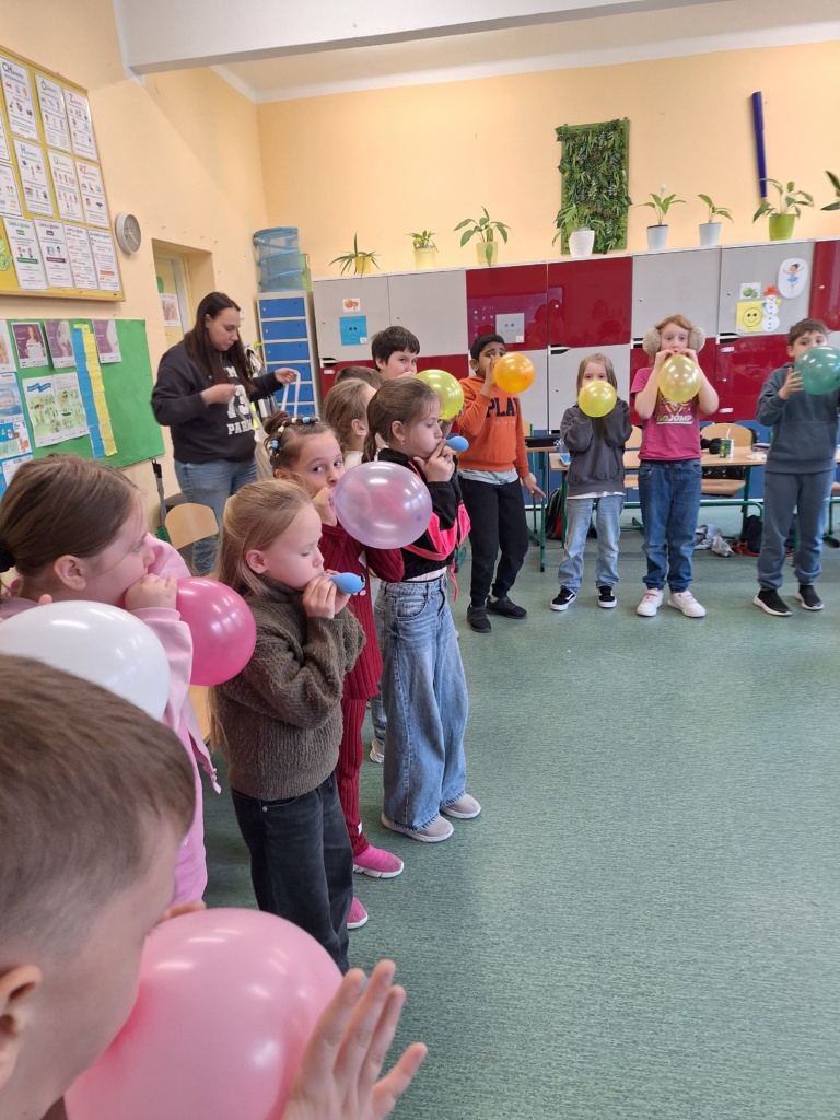 Od stycznia do marca w kl. 2b trwał cykl 10 zajęć logopedycznych pn. „GŁOSKI SZUMIĄCE- ćwiczenia logopedyczne usprawniające poprawną wymowę i prawidłowy zapis”. A ponieważ ” PRACĄ DZIECKA JEST ZABAWA”, uczyliśmy się wyłącznie przez zabawę!