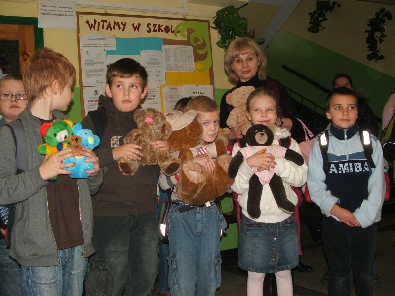 25 listopada obchodziliśmy w naszej szkole Międzynarodowy Dzień Pluszowego Misia. Tego dnia pluszaki opuściły dziecięce pokoje i zagościły w naszej szkole. Najpierw dzieci wysłuchały historii powstania pluszowego misia, potem rozwiązywały zagadki. Była prezentacja ulubionych misiów, wiersze i piosenki o misiach, zabawa z niedźwiedziem wraz z gośćmi z przedszkola nr77, konkurs plastyczny pt. "Mój ulubiony miś” i wiele innych atrakcji. Na podsumowanie święta uczniowie sfotografowali się ze swoimi pluszowymi przytulankami. Alicja Dercz |
