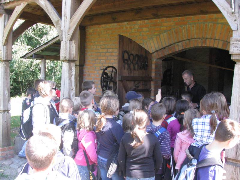 W dniach 20 – 25 września 2010, klasy III a i III b była na „zielonej szkole” we Wroniawach. Dużą atrakcją tego pobytu, oprócz mnóstwa zieleni i pięknej pogody, były wycieczki po ziemi wolsztyńskiej. Poznając historię regionu dzieci miały możliwość zapoznania się z ciekawymi i rzadkimi dziś zawodami. Na terenie Muzeum Regionalnego w Wolsztynie znajduje się skansen budownictwa ludowego. Tu uczniowie zwiedzili starą kuźnię, karczmę i wiatrak poznają pracę kowala, karczmarza i młynarza. Dzieci dowiedziały się, że kowal nie tylko podkuwał konie, ale był także mechanikiem, a czasami nawet wyrywał zęby. Karczmarz należał do najbardziej wpływowych mieszkańców wsi. Podawał jadło i trunki, a jego karczma była miejscem spotkań, w którym toczyło się życie kulturalne całej wsi. Dzięki wspólnemu wysiłkowi obu klas, dzieciom udało się ustawić do wiatru najstarszy, działający w Polsce wiatrak „koźlak”. Zwiedzając wiatrak mogły poznać pracę młynarza. W Wolsztynie zachwyt uczniów wzbudziły stare parowozy. Niejeden z chłopców miał ochotę choć przez chwilę zostać maszynistą. W Muzeum Pożarnictwa w Rakoniewicach wielu porzuciło ten zamiar, by zostać strażakiem. Mimo, że na każdym kroku widzimy nowe zdobycze techniki, a ludzie wykonują coraz to nowe zawody, praca rzemieślników i strażaków wciąż przykuwa uwagę dzieci. Iwona Dembowska, Anna Ziętek |