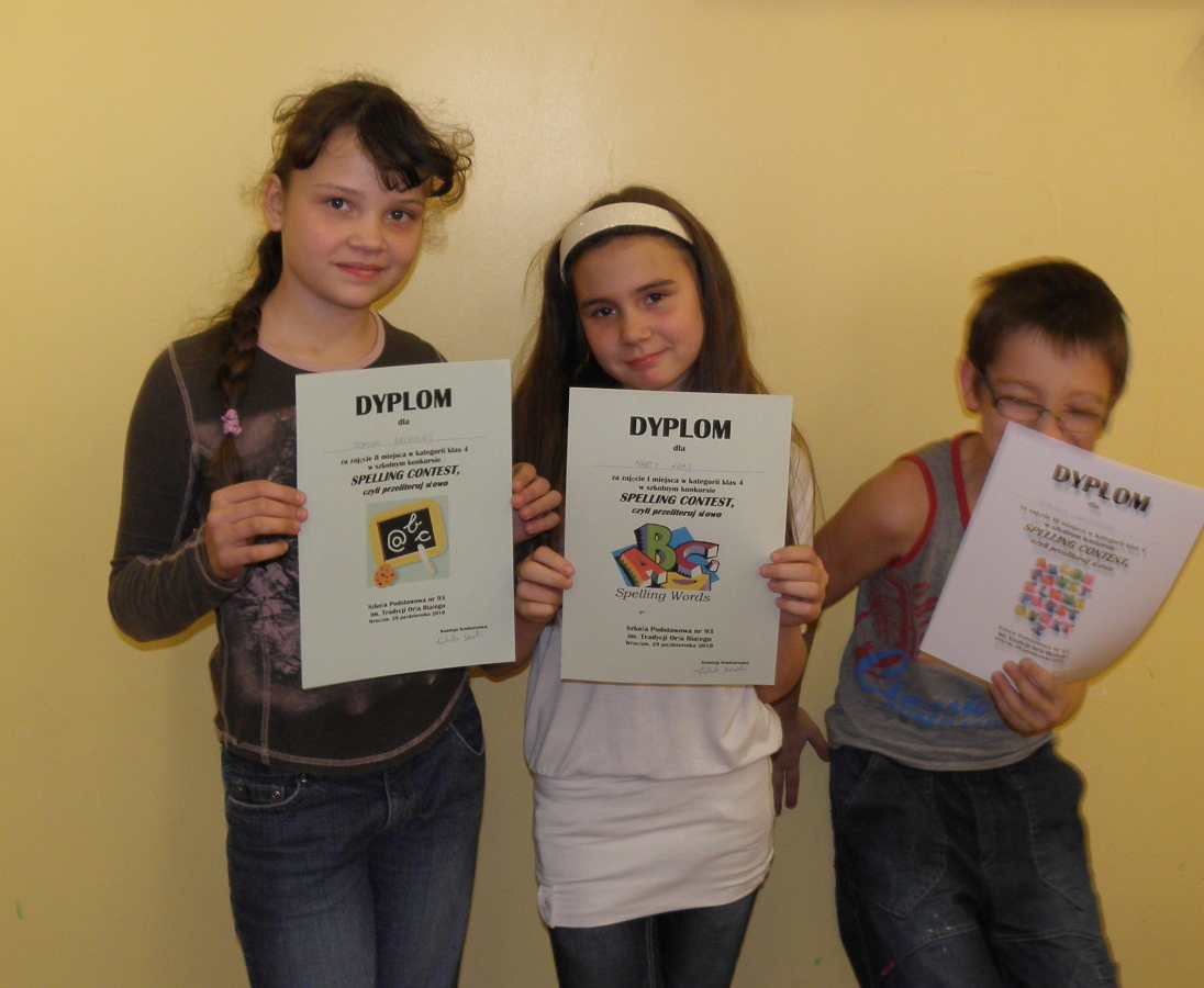 29 października 2010 w naszej szkole odbył się konkurs z języka angielskiego „Spelling Contest”. W konkursie uczestniczyło 17 osób z klas 4b, 5b i 6b. Uczestnicy zgodnie z regulaminem literowali słowa 3,4,5,6,7,8 i 9 literowe. W klasach 5 i 6 przeprowadzono dogrywkę. Po bardzo zaciętym pojedynku na litery w poszczególnych kategoriach wygrali: Kategoria klas 4: Miejsce I: Marta Kraj Miejsce II: Dominika Bielecka Miejsce III: Dominik Szechner Kategoria klas 5: Miejsce I: Daria Błaszczyk Miejsce II: Matylda Jopp