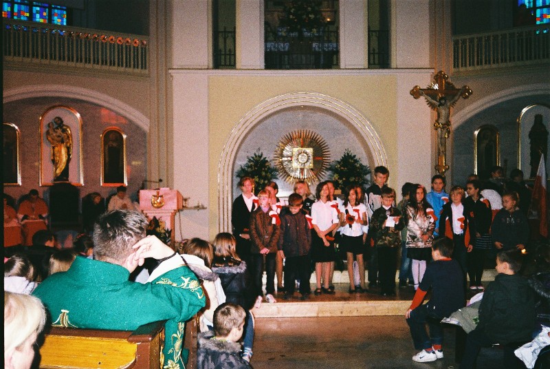 W parafii p.w. Opieki Św. Józefa , uczniowie naszej szkoły – przedstawiciele klas I-VI oraz chór szkolny, 14 listopada przedstawili, po Mszy Św. dla dzieci, program patriotyczny . Przypomnieli ważne wydarzenie, jakim było odzyskanie przez Polskę niepodległości w 1918r W wierszu, prozie i piosence patriotycznej, uczcili pamięć bohaterów, którzy oddali życie w walce o wolność. Młodym patriotom swoje uznanie wyraził O.MMirosław – wikariusz parafii. Zosia Lubryka kl. 4a, B.L z |