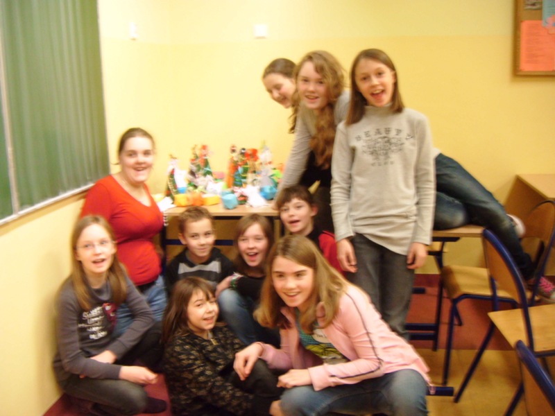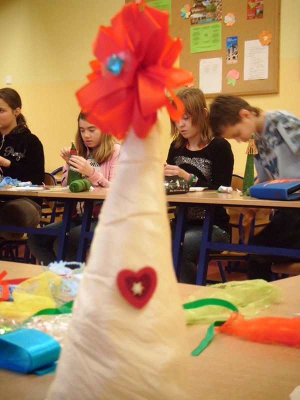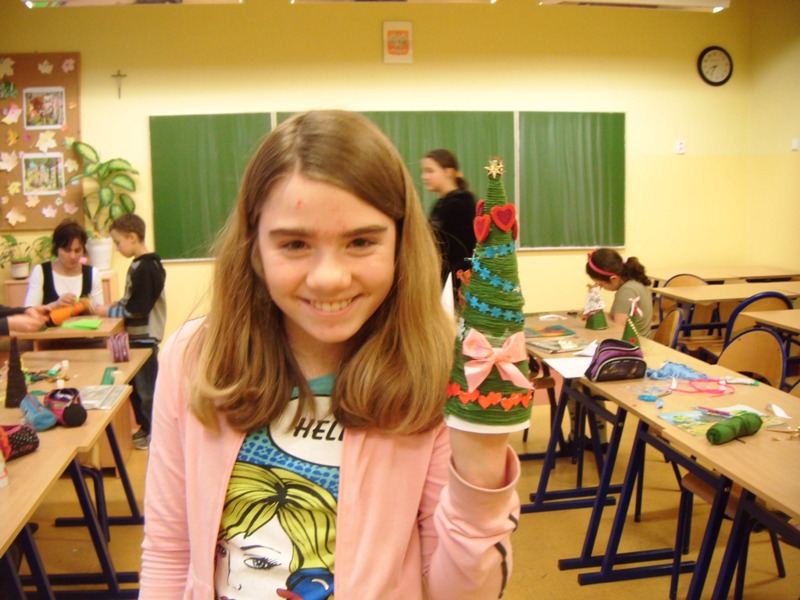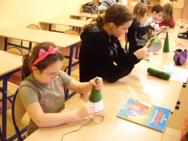 wykonały ozdoby świąteczne: choinkę, bombkę, aniołka i pudełko na