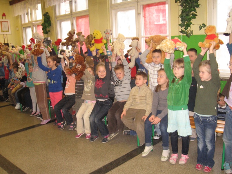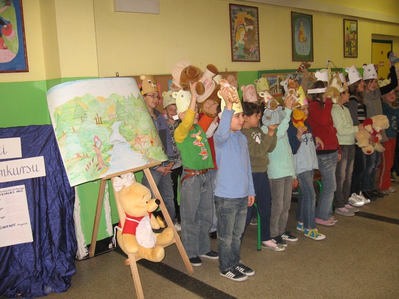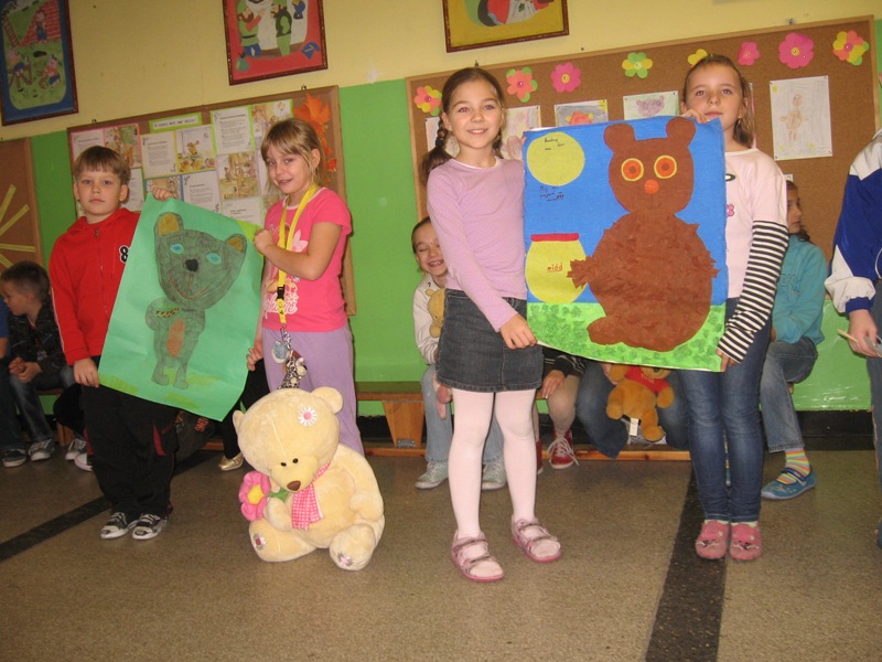 25 listopada obchodziliśmy w naszej szkole Międzynarodowy Dzień Pluszowego Misia. Trzy dni wcześniej odbył się konkurs plastyczny. Wykorzystując różne techniki, dzieci wykonywały ciekawe prace, które w Dniu Misia zdobiły szkolne korytarze i klasy. 24 listopada klasy zero złożyły wizytę w Bibliotece Publicznej, gdzie odbyły się zajęcia o Kubusiu Puchatku. 25 listopada Tego dnia przygotowano mnóstwo „misiowych” atrakcji. Podczas zajęć dzieci opowiadały o swoich misiach, słuchały „misiowych” piosenek, kolorowały obrazki przedstawiające Kubusia Puchatka, delektowały się „misiowymi” przysmakami. Zajęcia przebiegały w miłej i radosnej atmosferze. Na podsumowanie święta odbyła się „Wielka Parada Misiów". Na korytarzu szkolnym zaroiło się od pluszaków. Były te zupełnie malutkie misie, ale też te wielkie. Była to również doskonała okazja do integracji dzieci ze wszystkich klas . Ten dzień był wyjątkowy i upłynął nam pod znakiem zabaw, konkursów oraz tańców. Iwona Dembowska, Alicja Dercz |