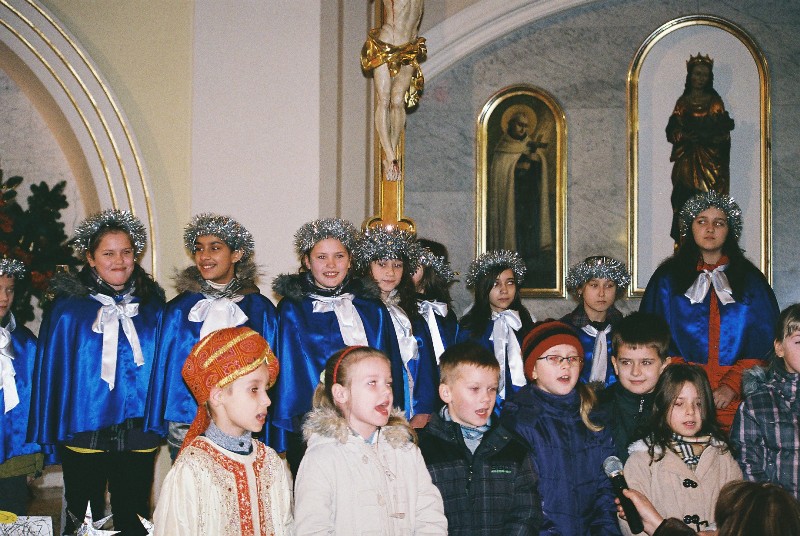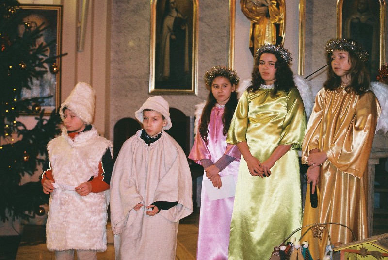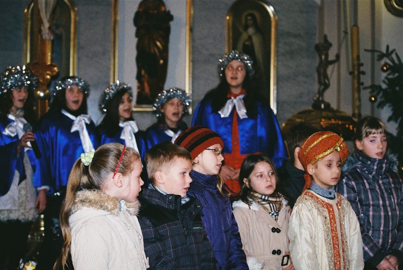 "Dzieciątko z Betlejem do świata się śmieje ..." Uczniowie naszej szkoły oddali hołd Bożemu Dzieciątku , w kościeleparafialnym p.w. Opieki Św. Józefa , 16 stycznia o godz.12.00 .Chór szkolny i uczniowie kl. I b, II b, IVa, IV b, Va, VIa , adorowali Dzieciątko Jezus , śpiewem oraz słowami modlitwy i poezji. Złożyli życzenia : księżom , rodzicom , nauczycielom i ludziom dobrej woli Dziecię Boże niech za wszystkie trudy , prace , starania – hojnie wynagrodzi.