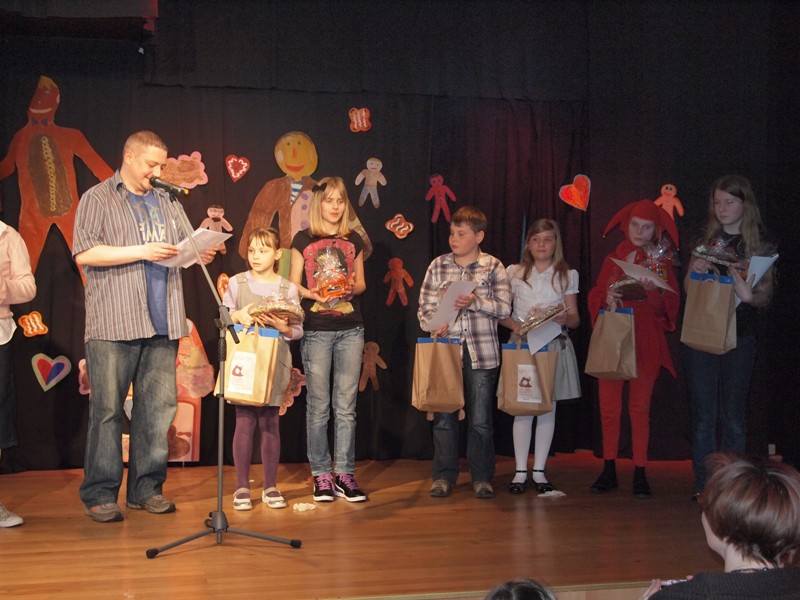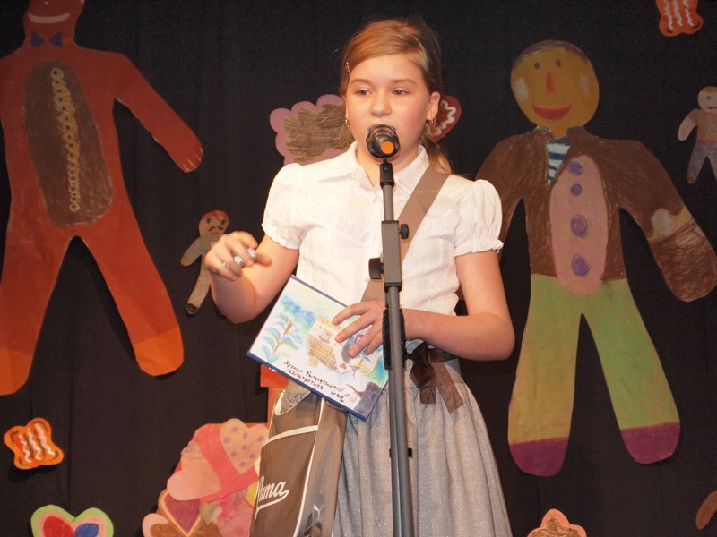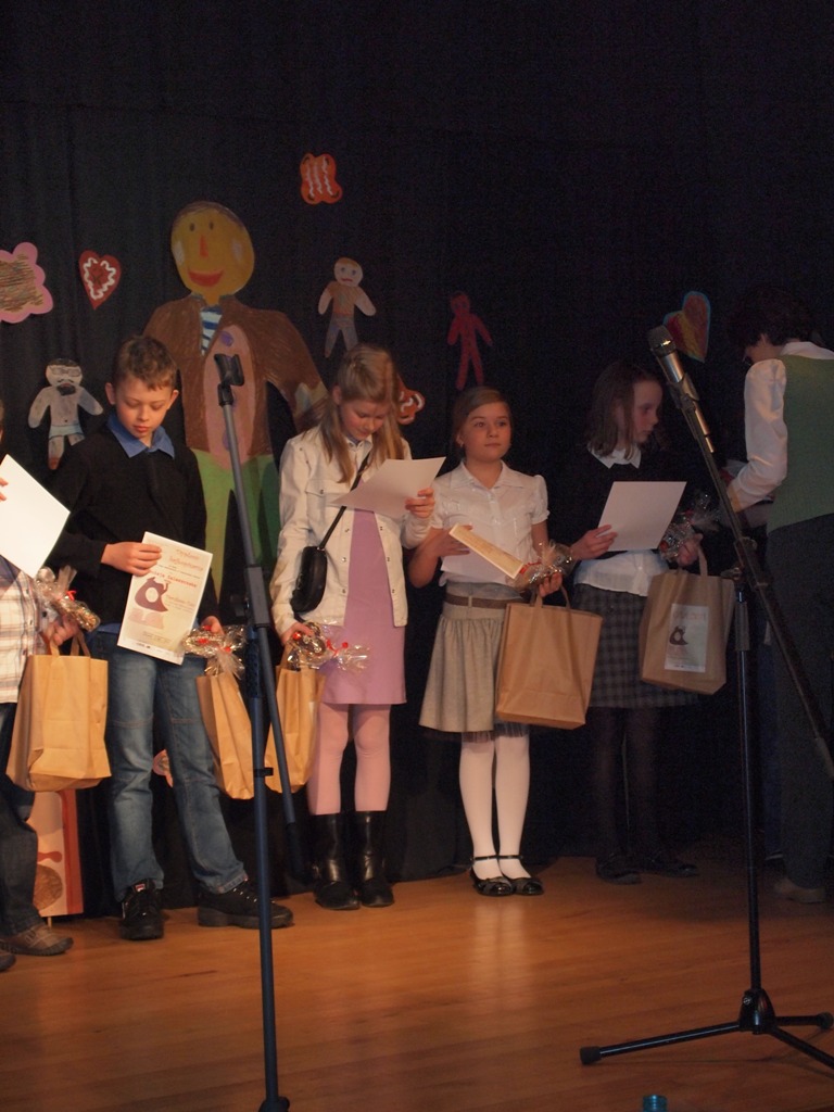 18 marca 2011 roku w Ośrodku Działań Twórczych Światowid odbyła się Gala IV Festiwalu Baśniopisarzy „Piernikowa Chata”. Wśród 10 laureatów znalazła się uczennica klasy Va Gabrysia Laskowska, która napisała baśń „Nie poddawaj się”. Najlepsi dziecięcy baśniopisarze przy wypełnionej sali widowiskowej opowiadali swoje utwory. Ich umiejętności bajania oceniało składające się z rówieśników jury, któremu przewodniczył autor literatury dla dzieci i młodzieży, pan Marcin Pałasz Również tym razem kunszt Gabrysi został wysoko oceniony- otrzymała wyróżnienie. W przerwie na obrady jury dziecięca widownia z zainteresowaniem obejrzała występy Teatru na Walizkach. Występom młodych baśniopisarzy przysłuchiwała się dziecięca widownia złożona z koleżanek i kolegów nagrodzonych uczniów, wśród nich klasa Va naszej szkoły. Jesteśmy naprawdę dumni z osiągnięć naszej Gabrysi. Teresa Bogusz |