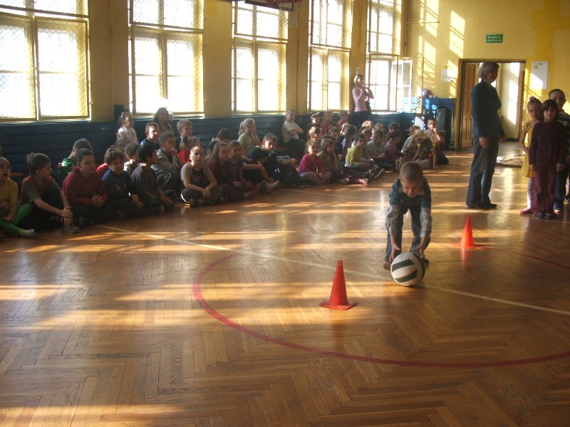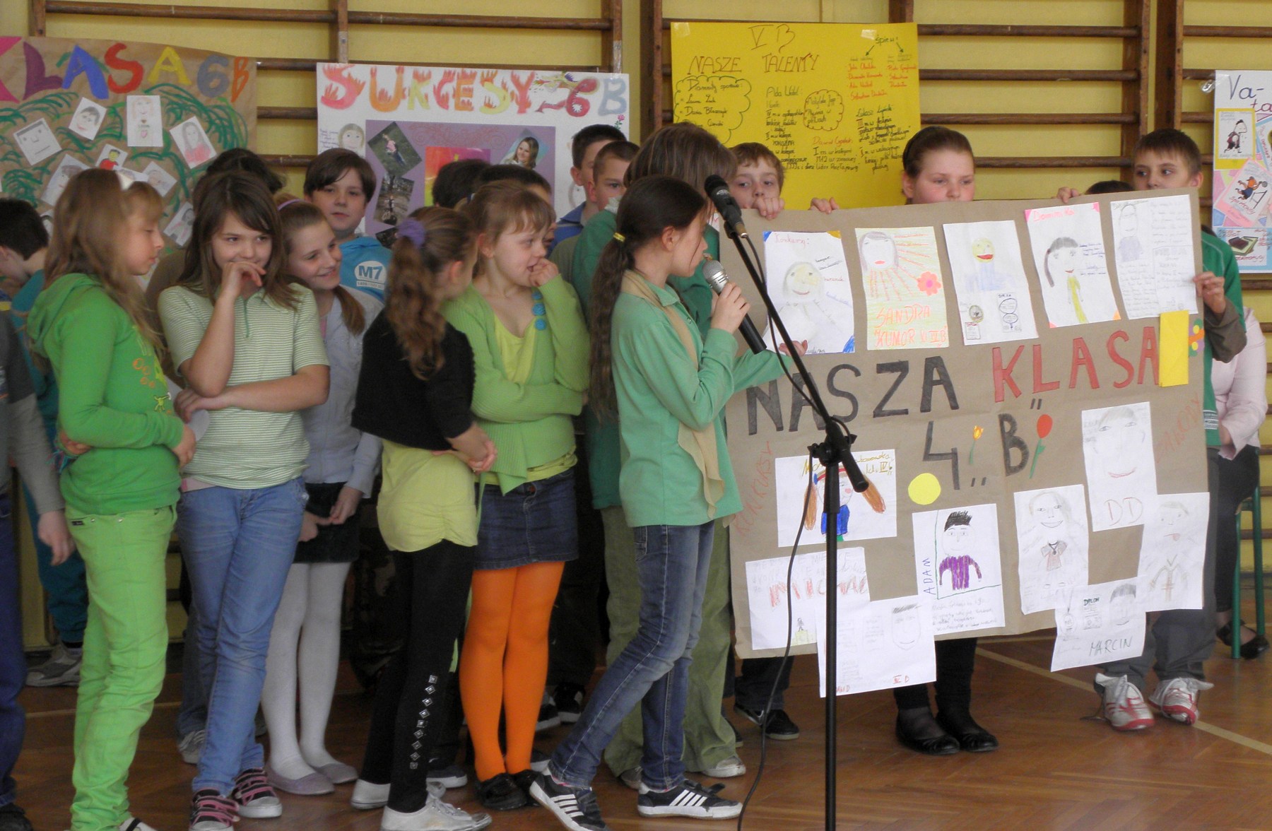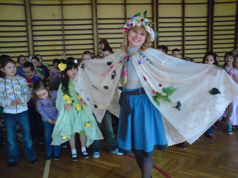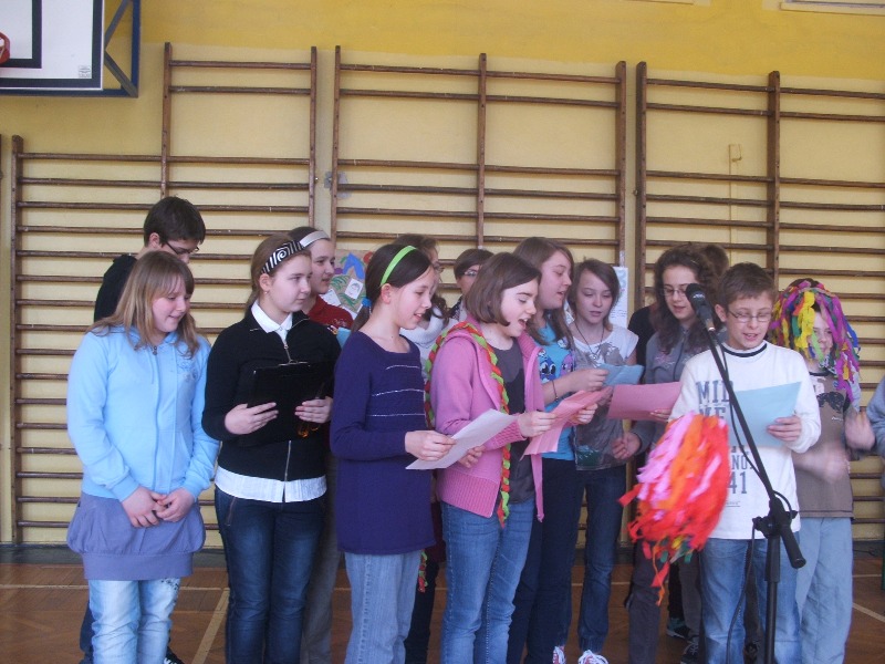 Uczniowie klas 0-III powitali wiosnę piosenkami i zabawami sportowymi z udziałem nauczycieli. W kolejnej części spotkania dzieci odpowiadały na pytania związane z oznakami wiosny oraz odbyła się prezentacja ukrytych talentów z różnych dziedzin artystycznych (śpiew, taniec). Korzystając z pięknej, słonecznej aury pozostałą część dnia dzieci spędziły na boisku szkolnym. W tym czasie uczniowie klas IV-VI uczestniczyli w zajęciach, które składały się z 3 części: sportowej, muzycznej i plastycznej. W części sportowej uczniowie rywalizowali w turnieju na sali gimnastycznej. W części muzycznej przygotowywali piosenkę o swojej klasie. W części plastycznej przygotowywali plakat promujący talenty poszczególnych uczniów. Na zakończenie Dnia Wiosny zaprezentowano przygotowane przez uczniów piosenki i plakaty. Ostatnim akcentem dnia było oddanie władzy na ręce Pani Dyrektor Jolanty Sawickiej. Dla wszystkich uczniów i nauczycieli był to dzień pełen wrażeń i radości. Renata Kamińska, Magdalena Ruchlewicz, Anna Ziętek , Andrzej Sawczuk