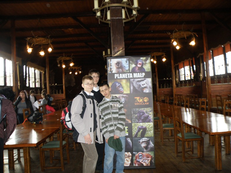 1 kwietnia 2011 roku w ZOO odbył się konkurs „Planeta Małp”. Tematem tegorocznej edycji były małpy człekokształtne. Naszą szkołę reprezentowało trzech uczniów z klasy 6b: Bartosz Jarmuż, Szymon Sudoł i Mateusz Dusza, których przygotowała p. L. Kumala. Poszło nam bardzo dobrze, ponieważ uzyskaliśmy dużą ilość punktów (18/25). Zmagaliśmy się z trudnym testem wiedzy, który składał się z 25 zadań. Organizatorzy zagwarantowali także słodki poczęstunek. Po teście zwiedzaliśmy ZOO z przewodnikiem, który zaprowadził nas do małpiarni. Tam spotkaliśmy się z panią Ewą, która pracuje z małpami już od 37 lat. Opowiedziała nam, jak wygląda jej codzienna praca. Po ogłoszeniu wyników, każdy otrzymał dyplom oraz torbę z różnymi przydatnymi pamiątkami. Mamy nadzieję, że przez kolejne lata nasi uczniowie będą brać udział w tego typu konkursach. Mateusz Dusza |