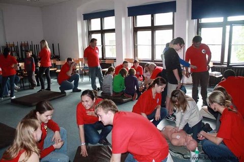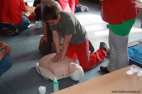 24 maja 2010 roku uczniowie klas piątych wzięli udział w warsztatach z udzielania Podstawowej Pierwszej Pomocy Przedmedycznej. Słuchacze Policealnego Studium Ratowników Medycznych KADRA we Wrocławiu pokazywali młodszym kolegom jak prawidłowo zachowywać się w sytuacjach, kiedy osoba poszkodowana jest przytomna , a jak w sytuacji kiedy przytomność straciła. Uczniowie dowiedzieli się co to znaczy ułożyć osobę poszkodowaną w pozycji bezpiecznej, jak postępować w sytuacjach zadławienia oraz postępować z osobami w ataku padaczki. Poznali również sposoby skutecznego wezwania pomocy. Uczniowie mieli okazję wypróbować swoje umiejętności na fantomach. Udział w warsztatach został zrealizowany w ramach szkolnego programu Bezpieczna szkoła. Grupa uczniów z klasy 5a, wg instruktażu ratownika medycznego ( rodzica uczennicy naszej szkoły), w ramach zajęć w Dniu Dziecka, przeprowadzi pokaz udzielania I pomocy dla uczniów klas 4-6, który mamy nadzieję spotka się z ich zainteresowaniem i być może przybliży uczniom piękną ideę ratownictwa medycznego. Beata Łopatniuk Wicedyrektor SP 93