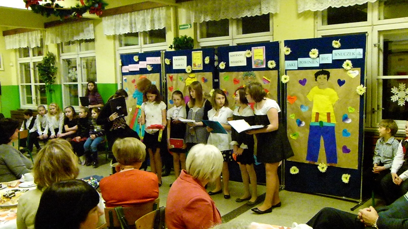 Dzień Babci i Dziadka w SP 93 im. Tradycji Orła Białego we Wrocławiu w ramach programu „Miasto Pokoleń”. Od października 2011r. do maja 2012r. we Wrocławiu wdrażany jest program Pilotażowy „Miasto Pokoleń”, do którego została zaproszona nasza szkoła. Celem programu jest zmiana postaw dzieci i młodzieży z takich, w których dominuje dystans, obojętność, czy niechęć wobec osób starszych, na takie, które cechuje zrozumienie, życzliwość i szacunek. Na każdy miesiąc zaplanowaliśmy szereg działań z udziałem liderów UTW, edukatorów zewnętrznych oraz dziadków i rodziców klasy II b. 31 stycznia 2012r. z okazji Dnia Babci i Dziadka odbyło się kolejne spotkanie pt. „nieZapomniane Melodie”. Oprócz zaproszonych przez wnuków babć i dziadków, swoją obecnością zaszczyciły nas Panie z Telewizyjnego Klubu Seniora pod przewodnictwem Pani Marii Bierskiej oraz Panie z UTW. Na tę okoliczność uczniowie przygotowali piękną dekorację, wiersze, piosenki, dyplomy i nad wyraz ciepłe ,drobne upominki. Piosenki z lat młodzieńczych naszych gości śpiewane wraz z wnukami, były okazją do integracji pokoleń. Przebieg spotkania zaskakiwał obustronnym zainteresowaniem oraz zaangażowaniem multipokoleniowym. Dzieci okazywały radość z niezwykle interesującej, kreatywnej i spontanicznej prezentacji artystycznej swoich Dziadków. Dziadkowie natomiast, nie ukrywając radości, wzruszenia oraz dumy z wnucząt cieszyli się z możliwości współuczestnictwa i autoprezentacji. Nieoczekiwanie ta, wydawałoby się gruba kreska granicy pokoleniowej zmalała do wartości minimalnej, czego dowodem była spontaniczna chęć kontynuacji spotkania wyrażana przez wszystkich jego uczestników. Obustronny aplauz i chęć dalszej zabawy pomimo późnej pory dowodzi, że „Program” ten powinien być kontynuowany i rozszerzony. Dorota Gutowska |